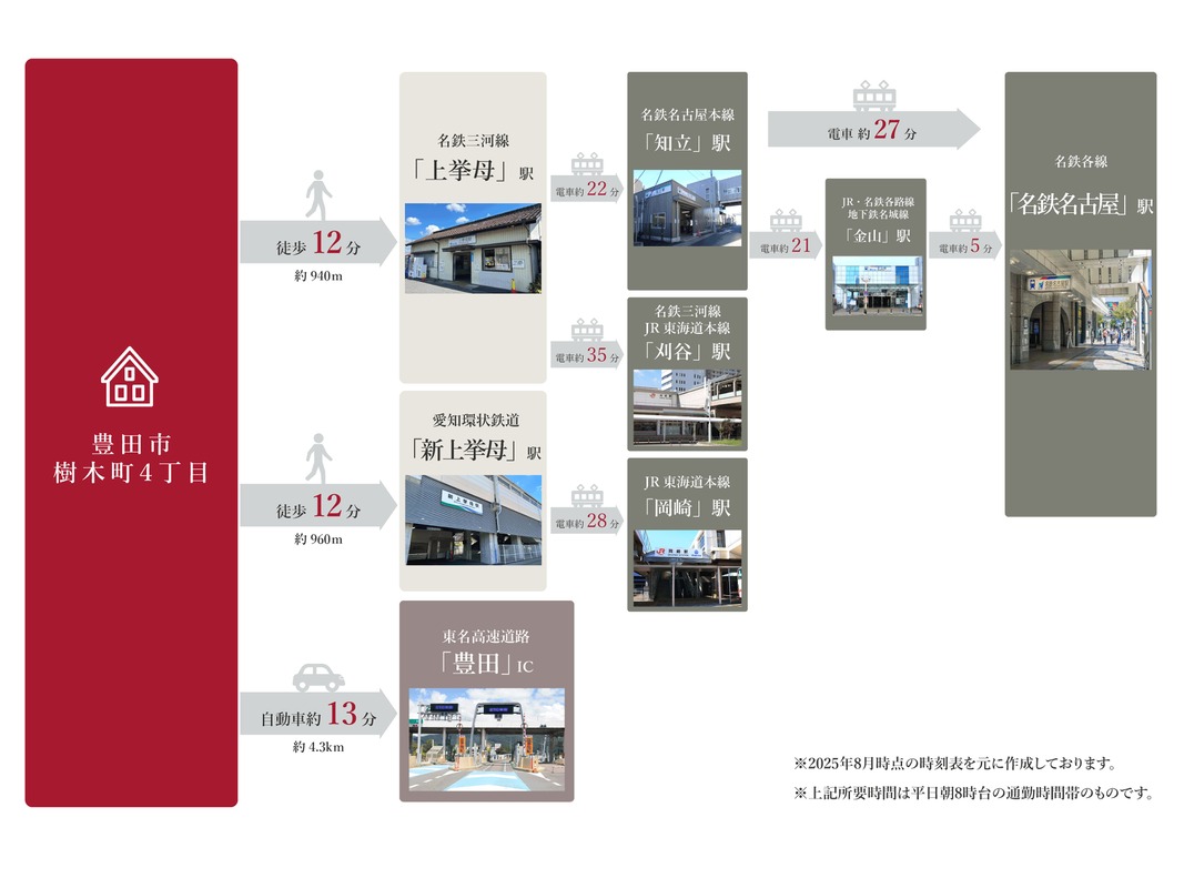 名鉄三河線「上挙母」駅 徒歩12分 愛知環状鉄道「新上挙母」駅 徒歩12分 名鉄豊田線「豊田市」駅 徒歩20分 |