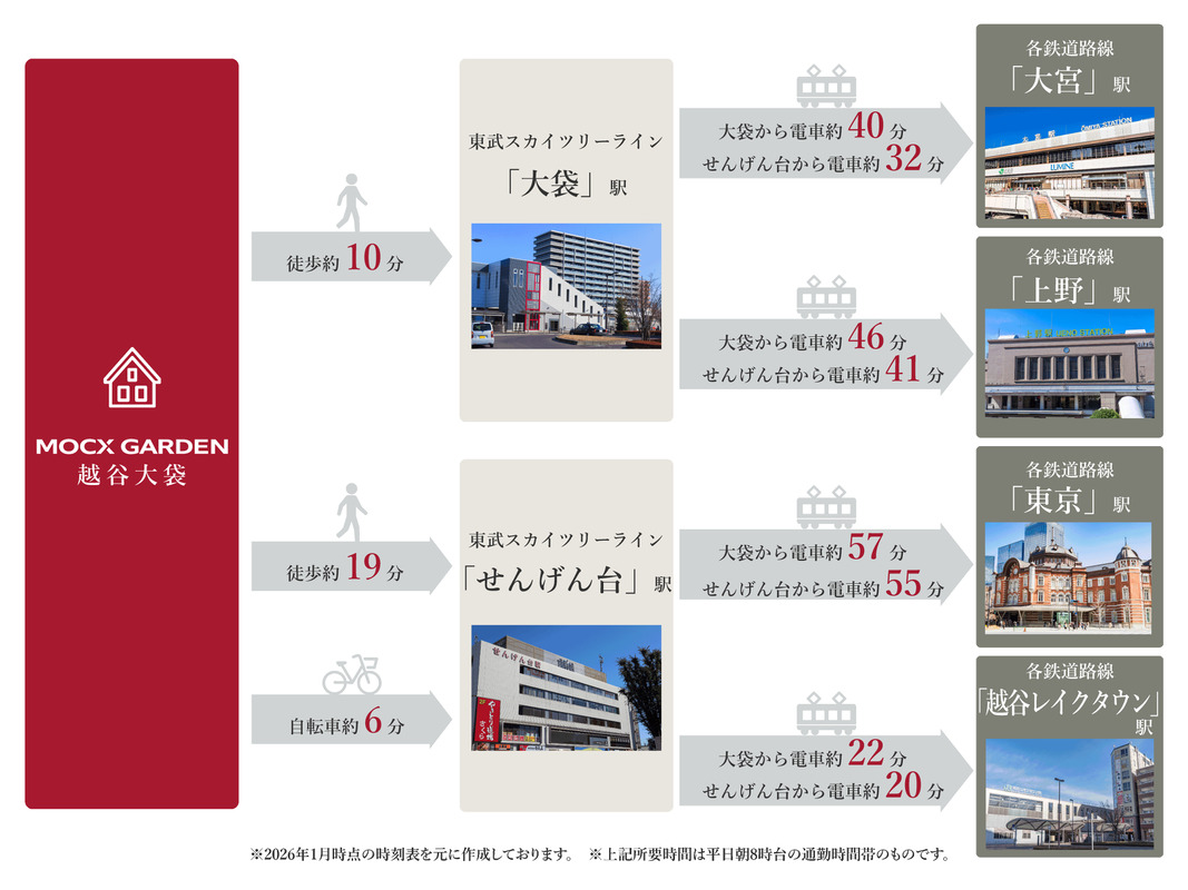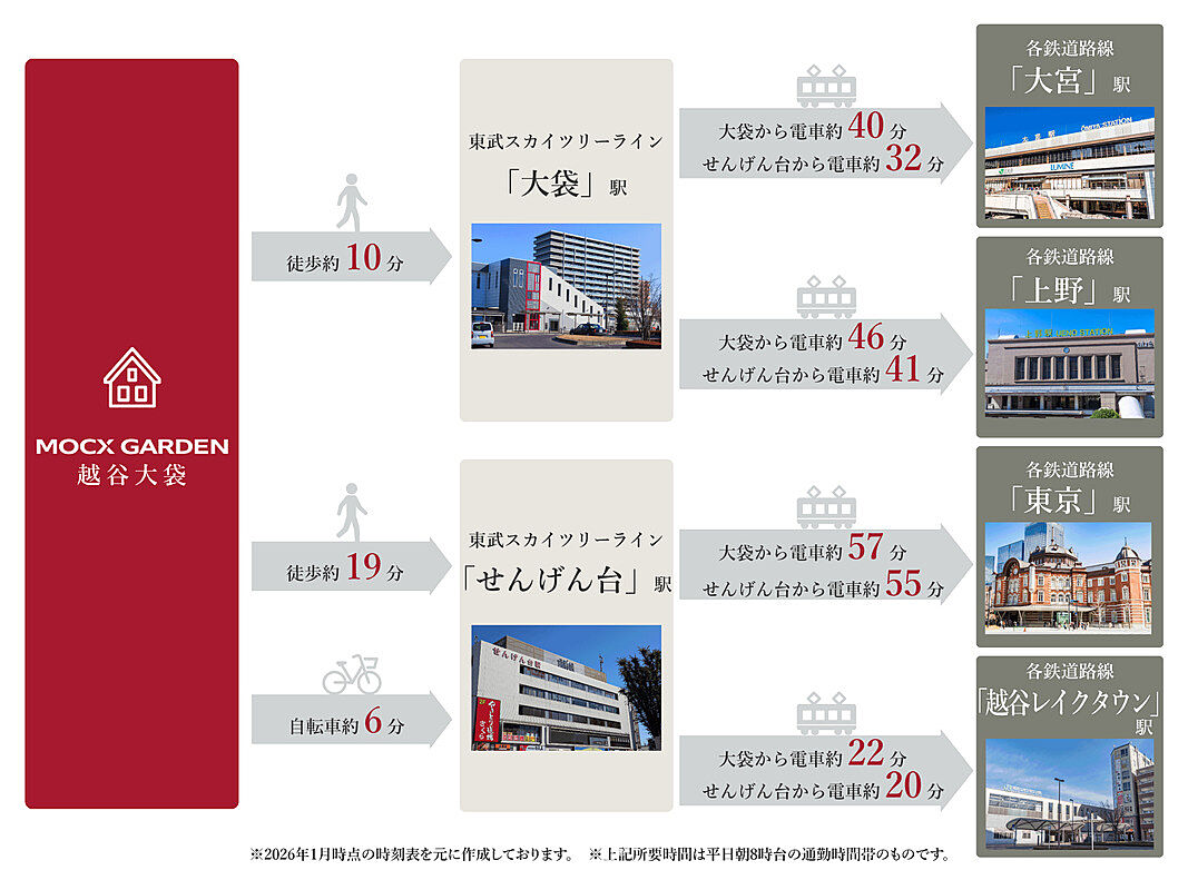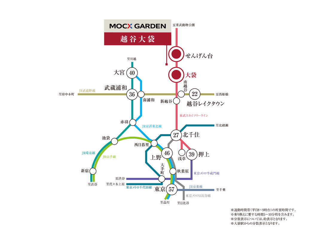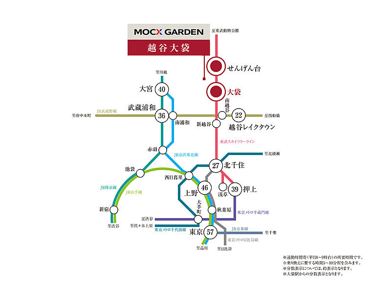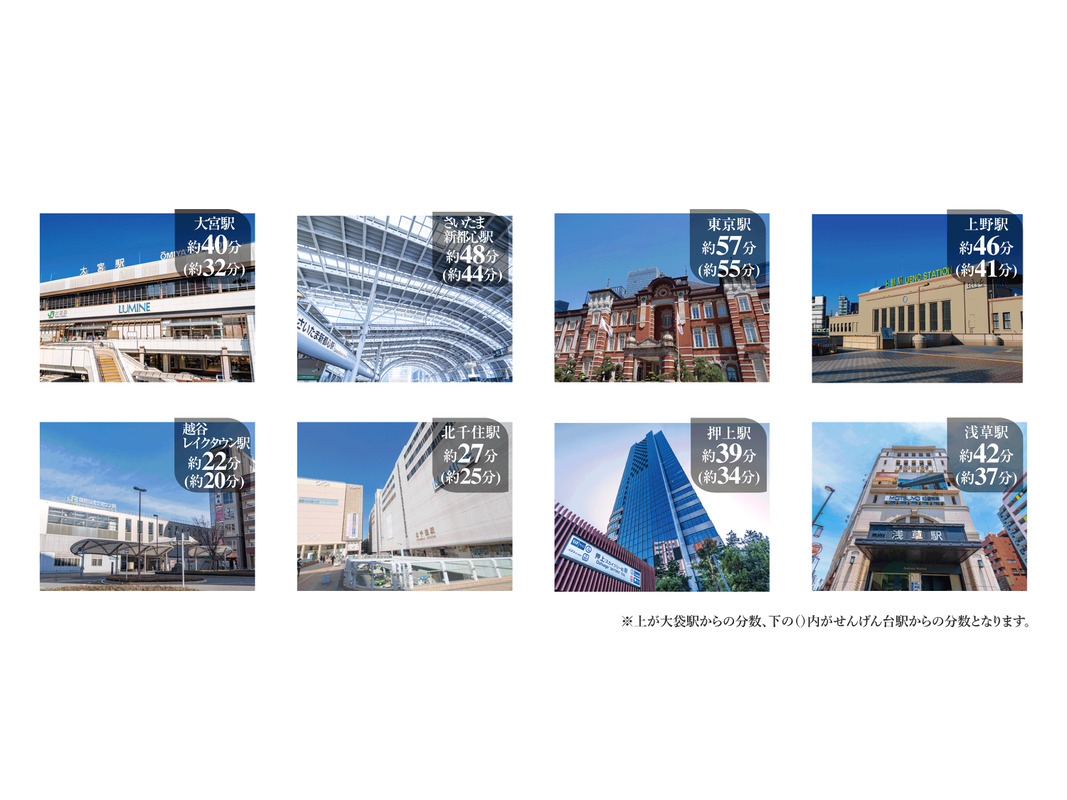 ■せんげん台駅から越谷レイクタウン駅まで20分、大宮駅まで32分