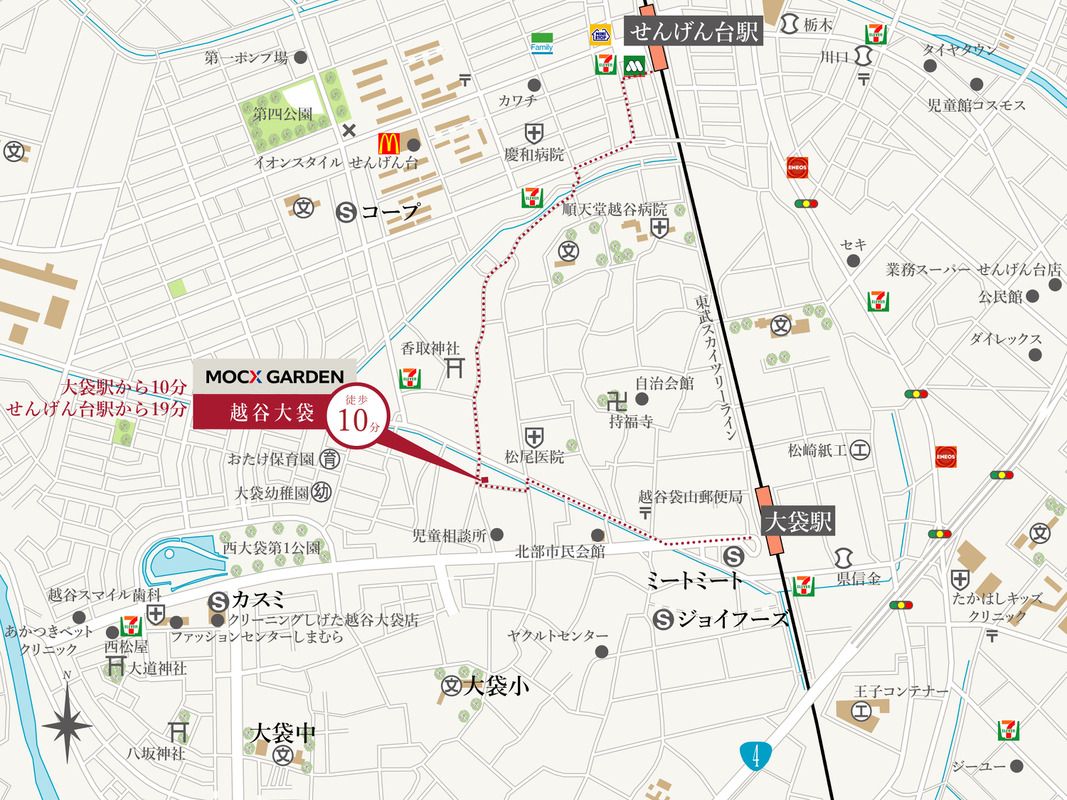 東武伊勢崎線「大袋」駅 徒歩10分 東武伊勢崎線「せんげん台」駅 徒歩19分 |