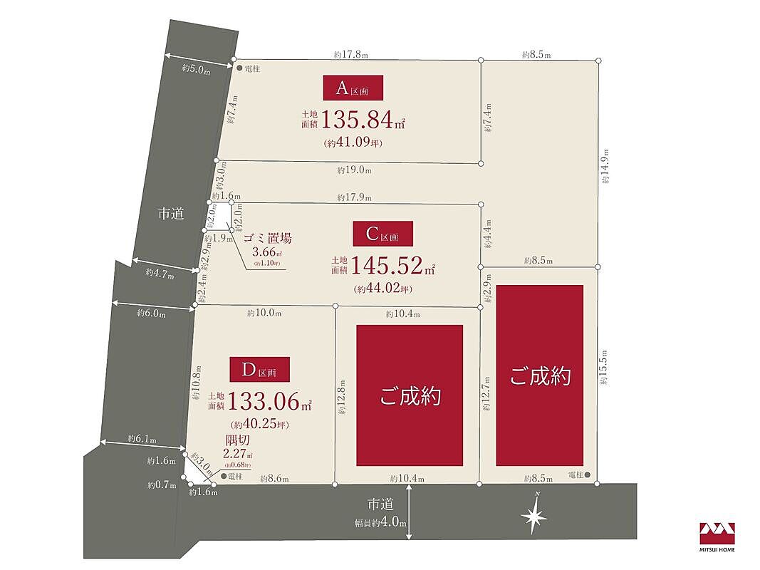 | 建物面積 | - | 土地面積 | 133.06m2(D区画)~145.52m2(C区画) |