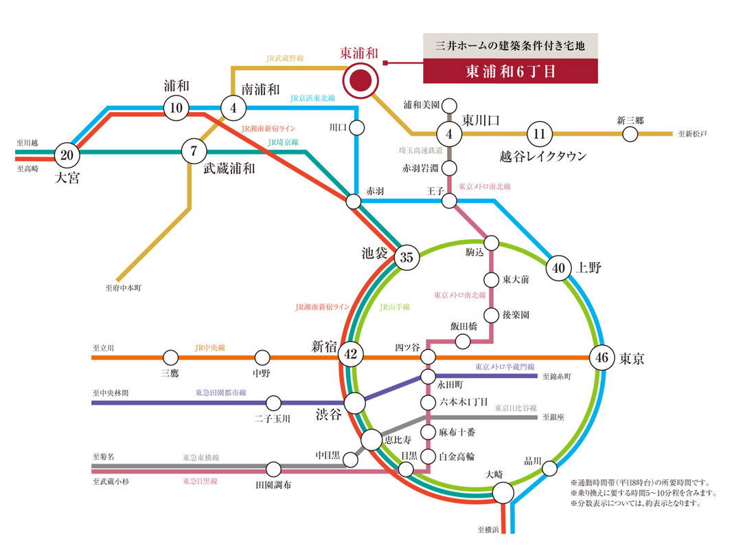 新宿駅まで42分、東京駅まで46分と都内まで軽快アクセス