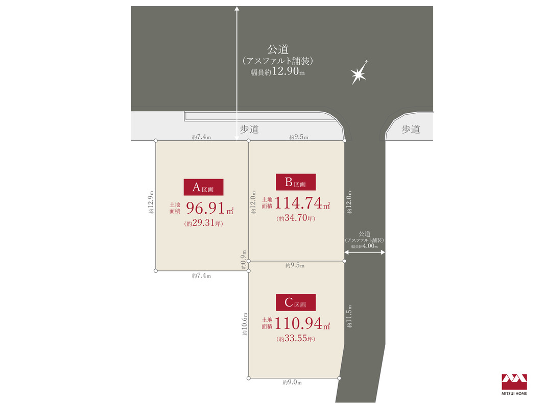 - 96.91m2(A区画)~114.74m2(B区画)