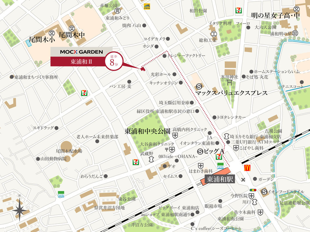 - JR武蔵野線「東浦和」駅 徒歩8分~8分