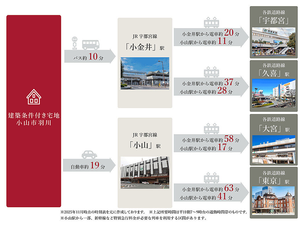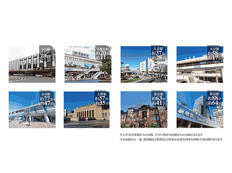 「小金井駅」と新幹線が停車する「小山駅」利用可能!