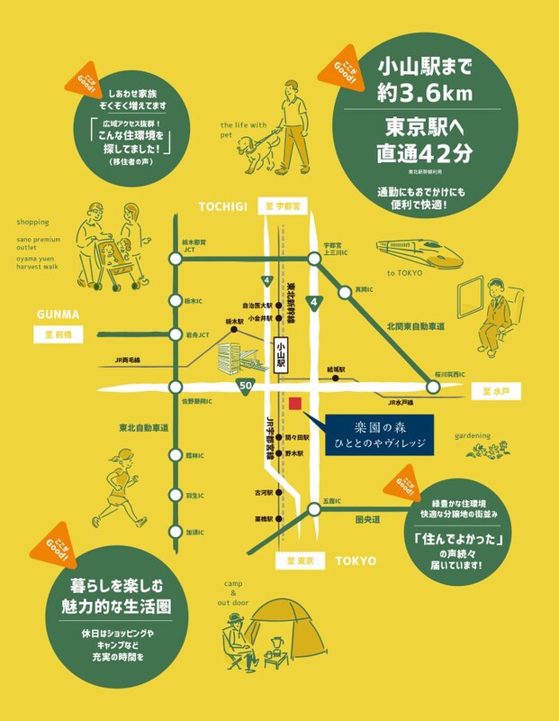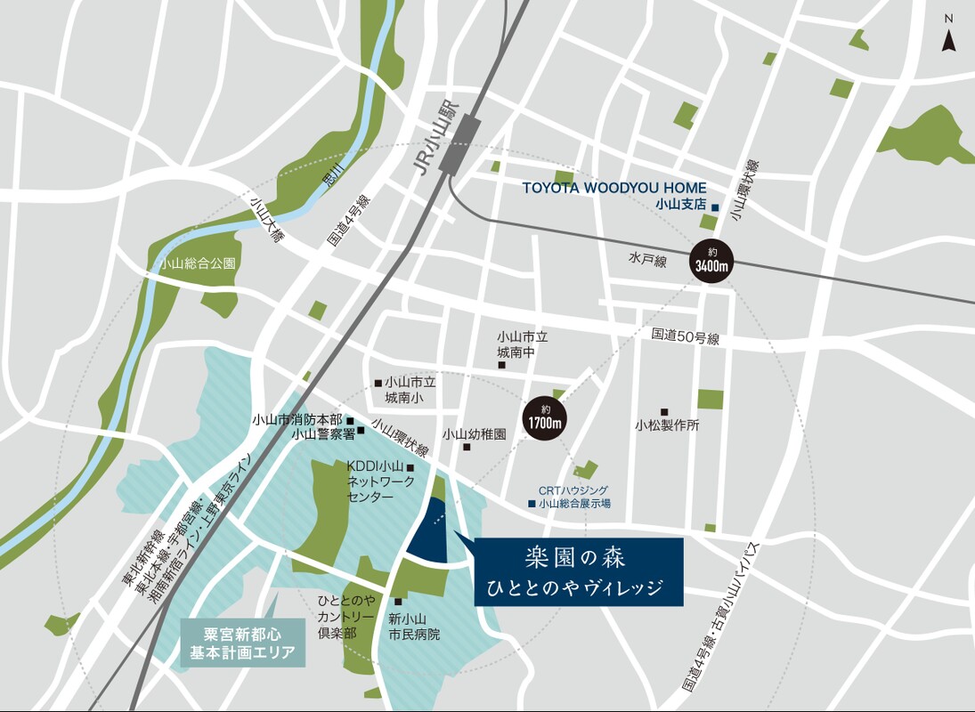 JR小山駅まで約3.3~3.9km、都心へ新幹線で快適にアクセス。