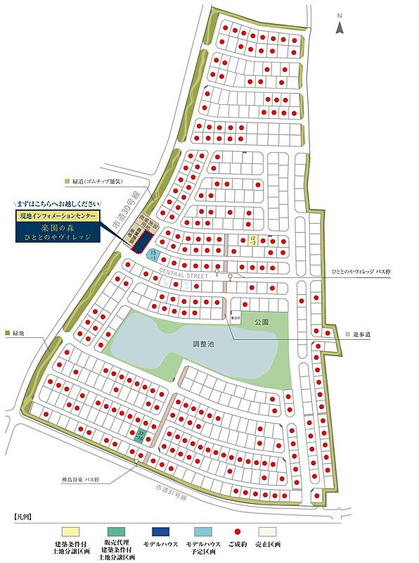 【区画情報】 ・12-3(12街区) 土地面積:208.95m2(63.20坪) 土地価格:910.3万円 ・37-16(販売代理区画) 土地面積:215.78m2(65.27坪) 土地価格:1285.8万円 【道路の幅員】 主幹線道路=幅員 12mアスファルト舗装(内 歩道=幅員2.5m、両側インターロッキング舗装)、副幹線道路=幅員 9mアスファルト舗装(内 歩道=幅員 2m、片側インターロッキング舗装)、区画道路=幅員 6mアスファルト舗装、フットパス=幅員 2.4mインターロッキング舗装、緑道(西側)=幅員 1.5~3mゴムチップ舗装、緑道(東、南、北側)=幅員 5m(植栽帯2m含む)ゴムチップ舗装 【主たる設備の概要】 雨水=調整池および浸透施設併用、雨水桝は設置しない、宅地内雨水浸透槽=設置しない 【水道加入金】 口径20mmの場合150,700円(税込)※検査手数料別途要 口径25mmの場合302,500円(税込)※検査手数料別途要 ※小山市水道課の指導により、区画面積が大きい区画は2世帯に対応可能な 口径25mmを引き込んでいます。口径20mmでの加入は可能ですが、 口径25mmで加入する場合は加入金が異なりますので注意願います。 【備考】 ※当該分譲地は「神鳥谷南地区計画」に該当します。建築物等の用途制限、 建築物の容積率および建ぺい率の最高制限、敷地面積の最低限度、 壁面の位置制限、建築物等の高さの最高限度、建築物等の形態または 意匠の制限、かきまたはさくの構造制限等、規制されておりますので、 詳しくは係員にお尋ねください。 ※先着順受付につき、ご成約済みの際はご容赦ください。 ※建築条件付土地分譲/この土地は、土地売買契約締結後3ヶ月以内に トヨタウッドユーホーム株式会社と住宅の建築請負契約を締結することを 条件として販売します。この期間内に住宅建築請負契約が成立しない場合は、土地売買契約は白紙となり、お預かりした金銭は全額速やかにお返しします。 |