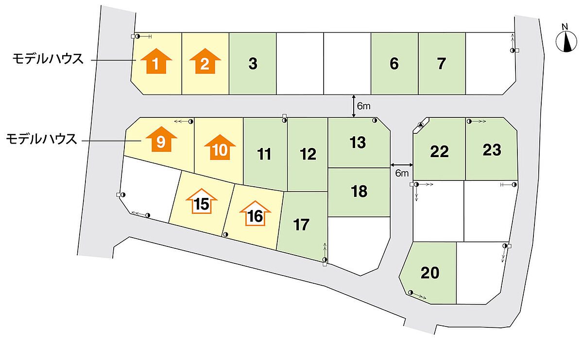 【主たる設備の概要】 雨水=側溝放流(自然流下のみ)、雨水桝=無、宅地内雨水浸透槽区画=有(No,2~No,9、No,13~20、No,23~25) 【敷地の面積制限】 有(最低限度200m2) 【換地及び売り止め】 有(7区画) 【水道加入金】 20mmの場合143,000円(税込)検査手数料別途5,000円 【建築条件付分譲地】 この土地は、土地売買契約締結後3ケ月以内にトヨタウッドユーホーム株式会社と住宅の建築請負契約を締結することを条件として販売します。この期間内に住宅建築請負契約が成立しない場合は、土地売買契約は白紙となり、お預りした金銭は全額速やかにお返しします。 【区画情報】 ・No.22 土地面積:218.94m2(66.22坪) ・No.23 土地面積:222.35m2(67.26坪) |