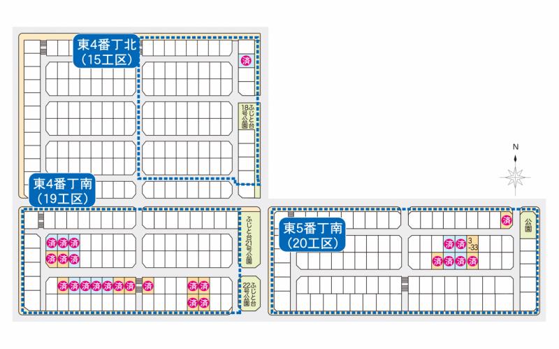 魅力1 ふじと台で自由設計の区画が3区画販売中です。
