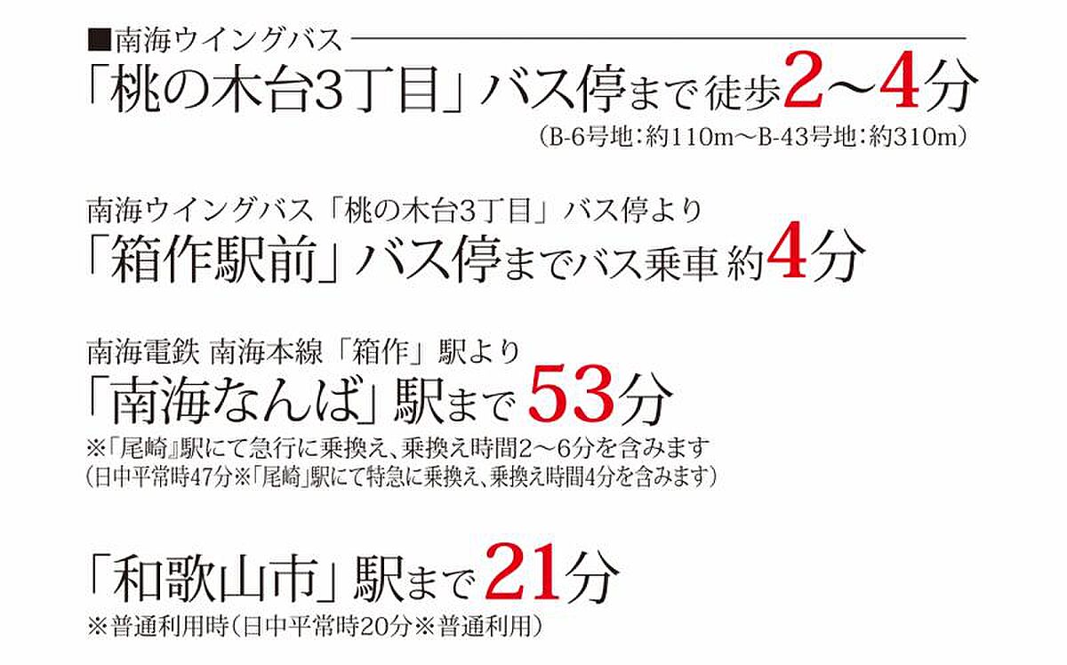 南海線「箱作」駅 南海ウィングバス乗車4分、桃の木台三丁目バス停 徒歩2分~3分 |