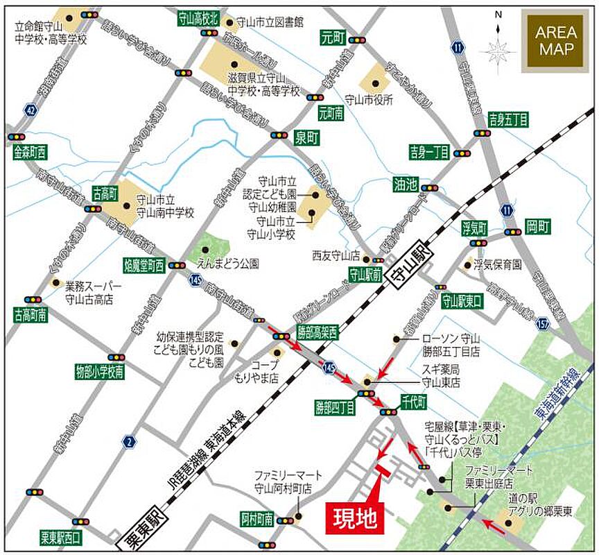 JR東海道・山陽本線「守山」駅 徒歩17分 JR東海道・山陽本線「栗東」駅 徒歩23分 |