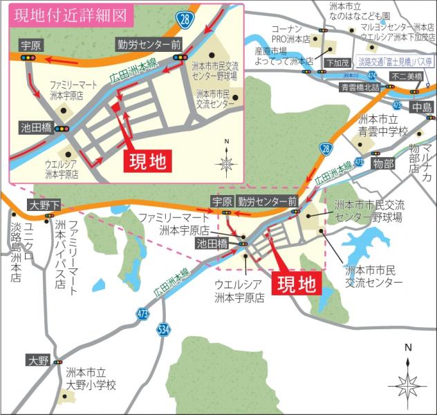 「」駅 淡路交通「富士見橋」バス停 徒歩22分~22分 |