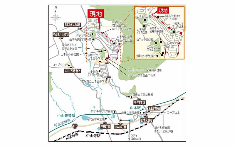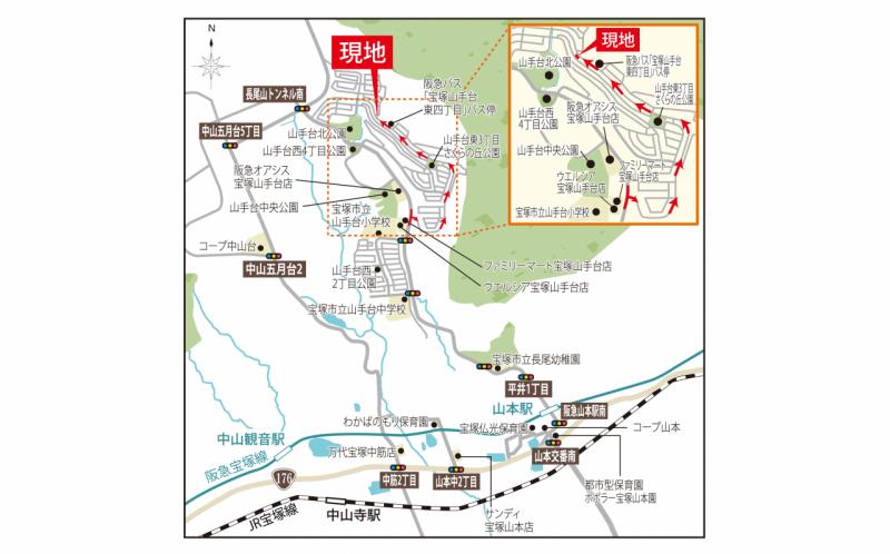 阪急宝塚本線「山本」駅 阪急バス乗車11分、宝塚山手台東四丁目バス停 徒歩2分 |