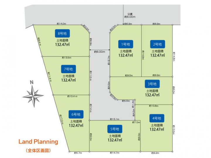 | 駐車場 | 0台 | 道路の幅員 | 北側約6.0m公道 |