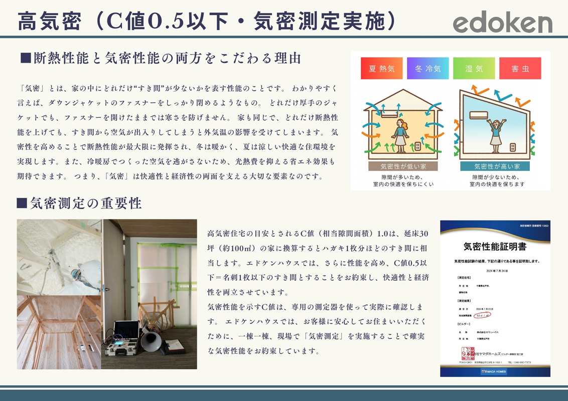 気密性能(C値0.5以下・気密測定実施)
