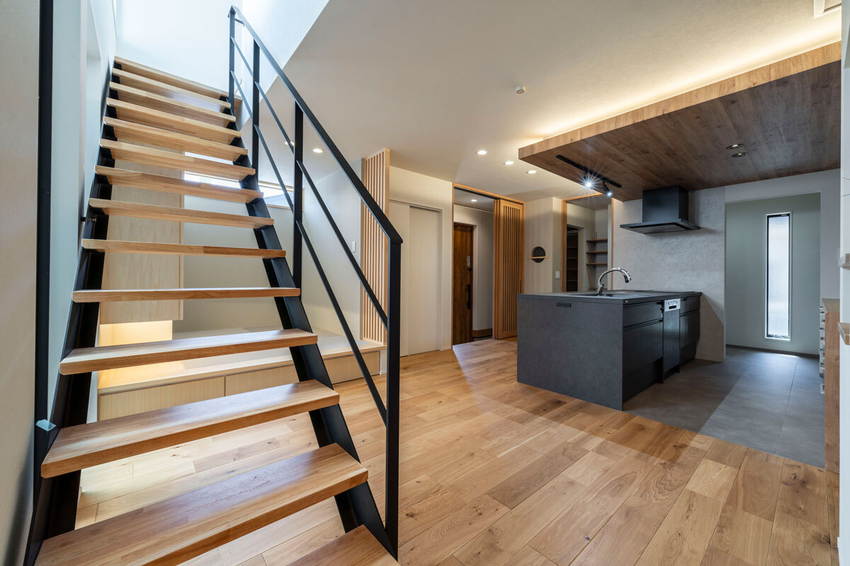 階段がつくる、縦に広がる開放感。のびやかなLDK施工例