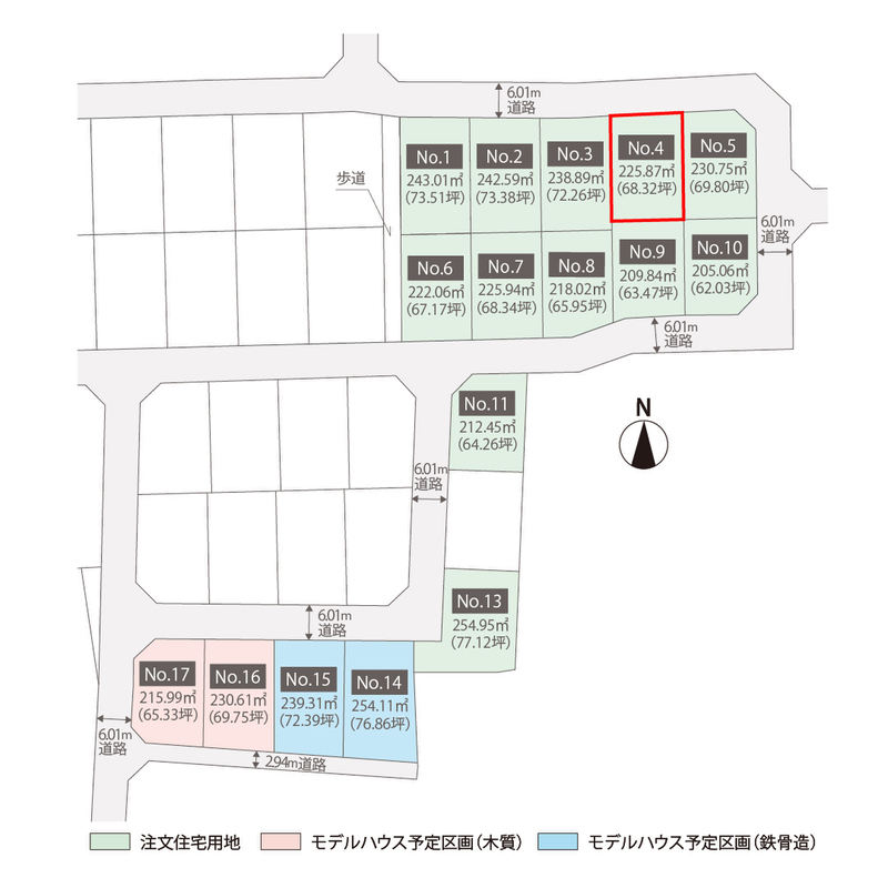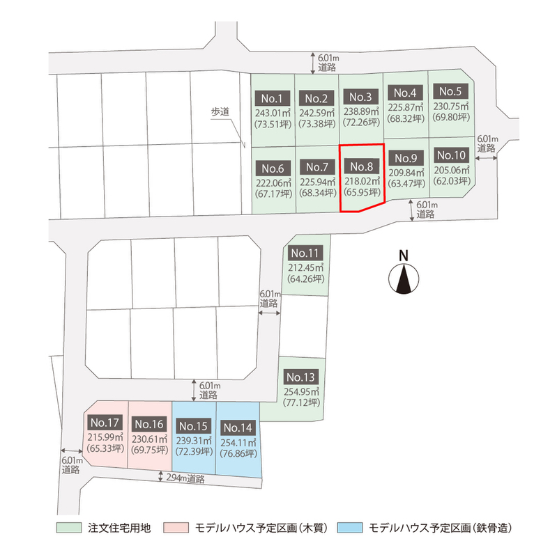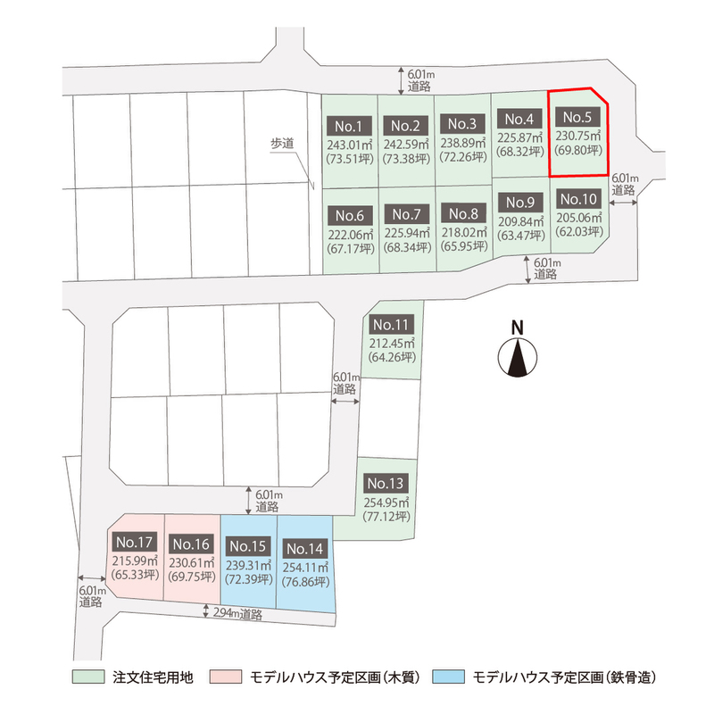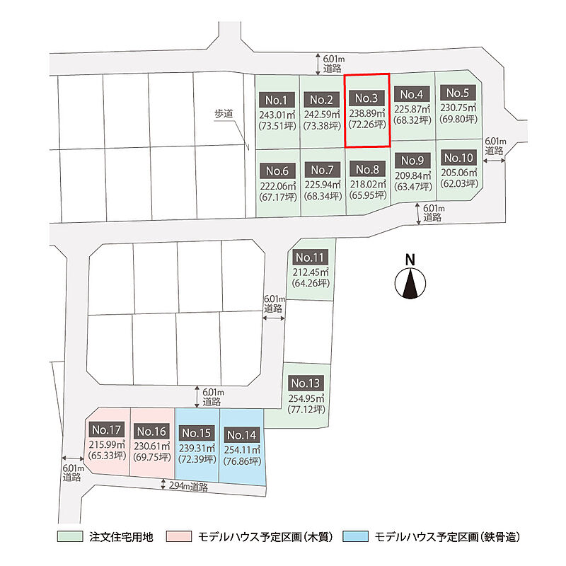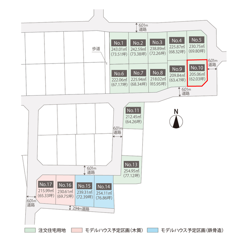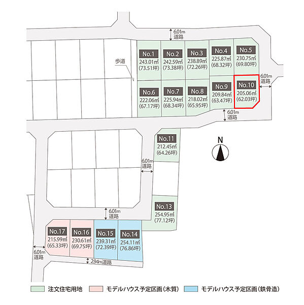 | 建物面積 | - | 土地面積 | 205.06m2 (1区画) ~ 254.95m2(1区画) |