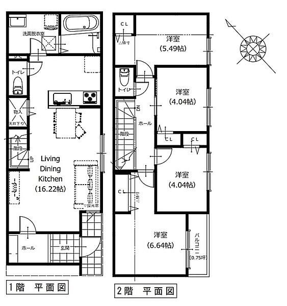 南西道路に面した建築条件無し土地。2階建ての建物参考プランございます。