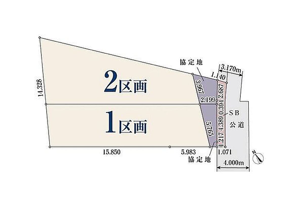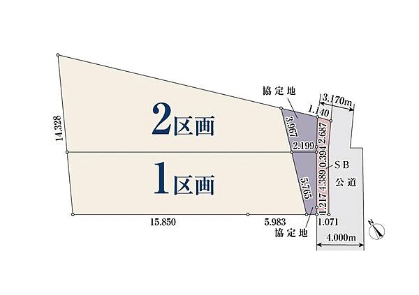 | 備考 | 建築条件無/協定部分8.69~9.25m2含/私道部分3.22~6.01m2/管理番号:586011 | ||
