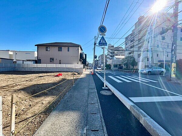 前面道路は10.4mと広々。敷地面積217m2の建築条件無し売地です。