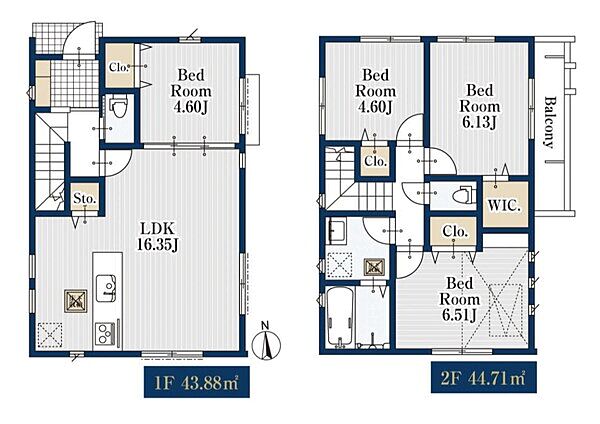 建築条件無につき自由な設計が可能。全居室収納付き建物参考プランございます。