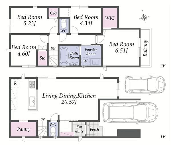自由設計可能な建築条件無し分譲地。2階建ての建物参考プランございます。