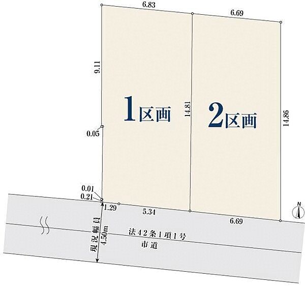 | 駐車場 | 0台(無(1・2区画)) | 道路の幅員 | 4.5m |