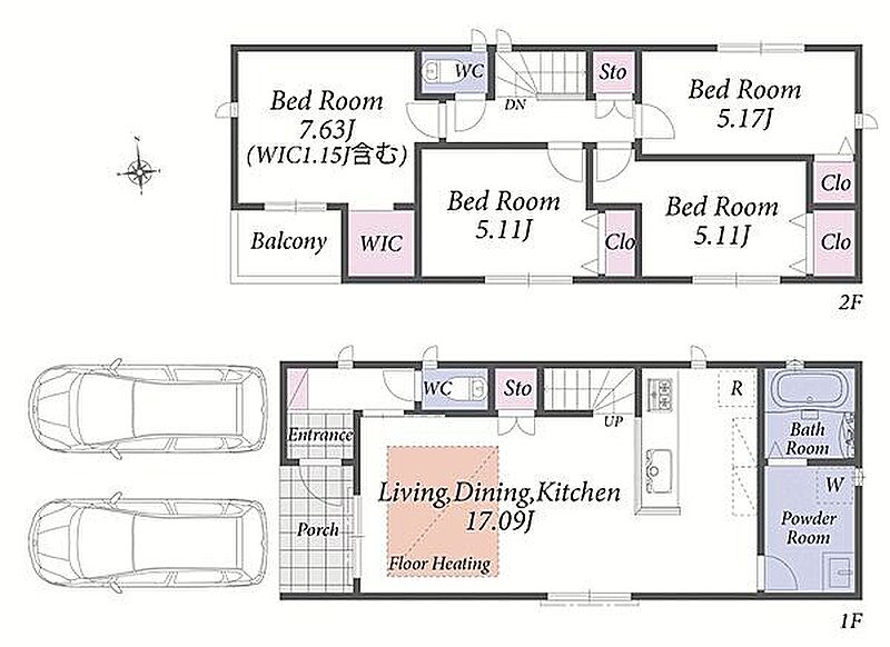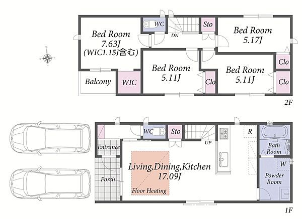 建築条件無につき自由な設計が可能。並列駐車2台可能な参考プランございます。