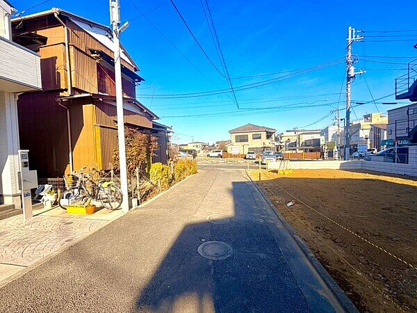 130m2以上の建築条件なし売地。北東×北西角地につき、開放的な立地です。