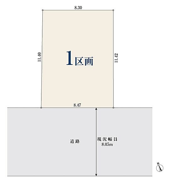 間口8.4m×前面道路8mと広々。自由設計が可能な建築条件無し売地です。