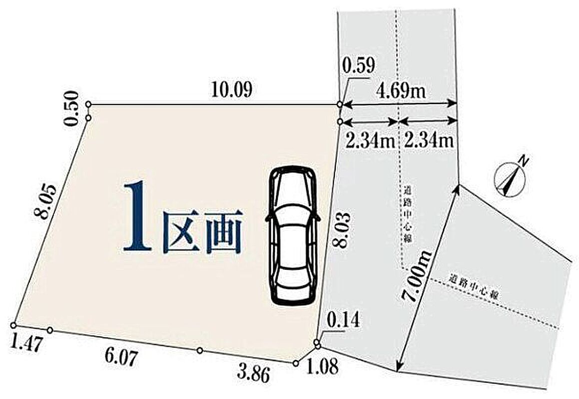 間口8mと広々。建築条件が無いため、お好きなプランで建築可能な売地です。