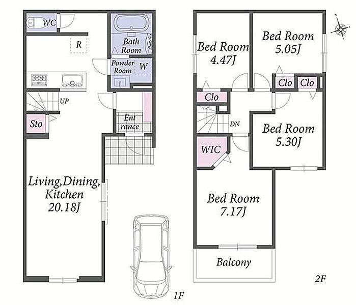 自由設計可能な建築条件無し売地。2階建ての建物参考プランございます。