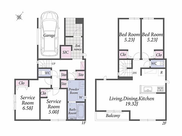 上大岡駅歩10分の建築条件無し売地。2階建ての建物参考プランございます。