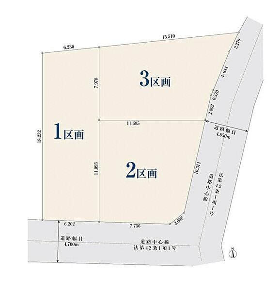 | 駐車場 | 0台(無(1・3区画)) | 道路の幅員 | 4.7m~4.8m |