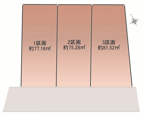 南西側道路に面した建築条件無し分譲地。各区画建物参考プランございます。