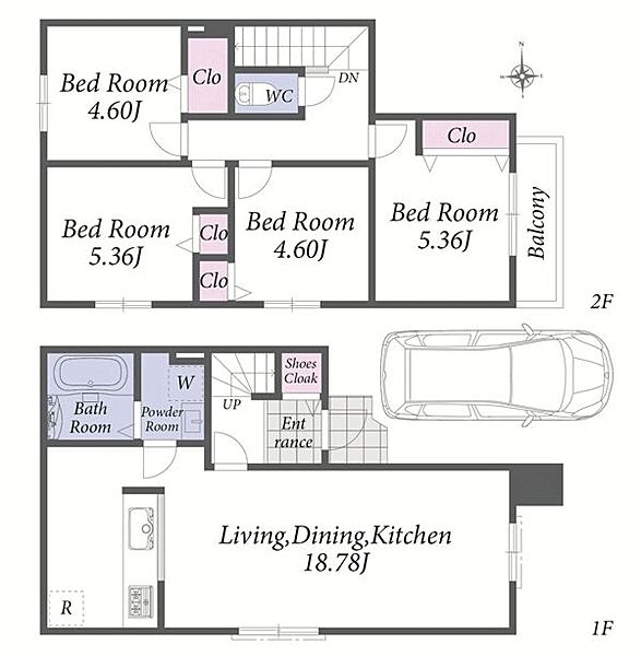 自由設計可能な建築条件無し分譲地。2階建ての建物参考プランございます。