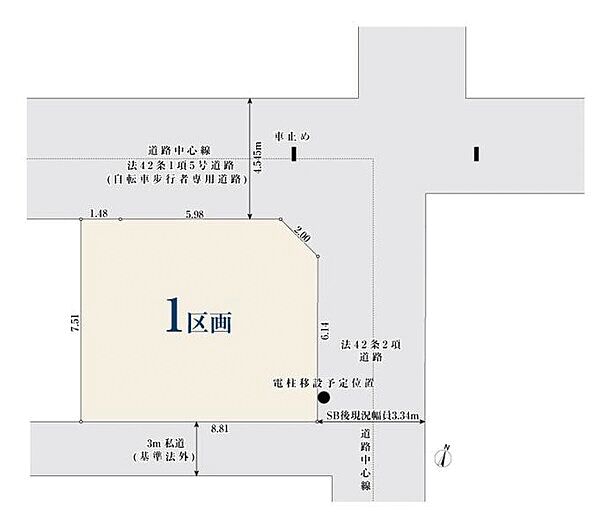 | 駐車場 | 0台(無(1区画)) | 道路の幅員 | 3.3m~4.5m |