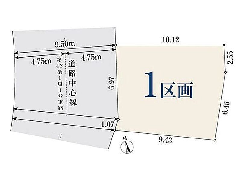 前面道路は9.5mで広々。建物参考プランを準備した売地のご紹介です。