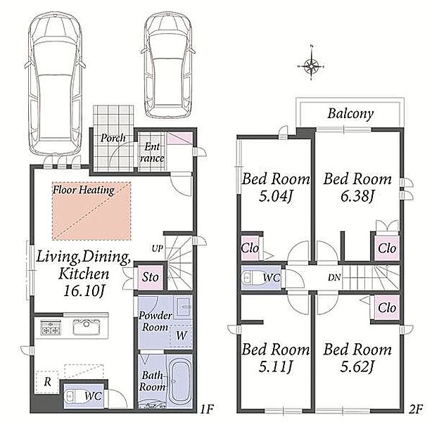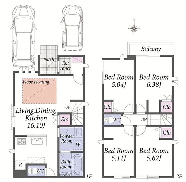 自由設計可能な建築条件無し分譲地。2階建ての建物参考プランございます。