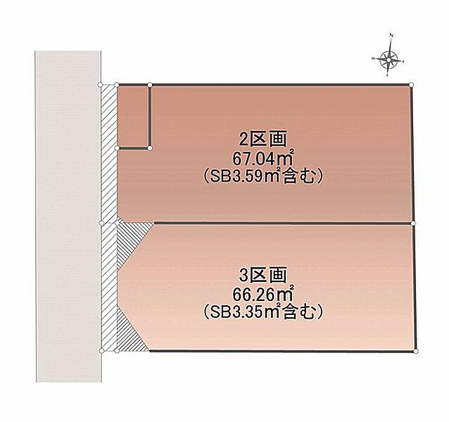 | 備考 | 建築条件無/別途共有持分0.86m2有/協定部分0.04~1.5m2含/景観法/建築有効面積除外部分0.53m2含(2区画のみ)/建築有効面積除外部分0.48m2含(3区画のみ)/通路提供部分1.2m2含(3区画のみ)/セットバック部分3.35~3.59m2含/管理番号:603328 | ||