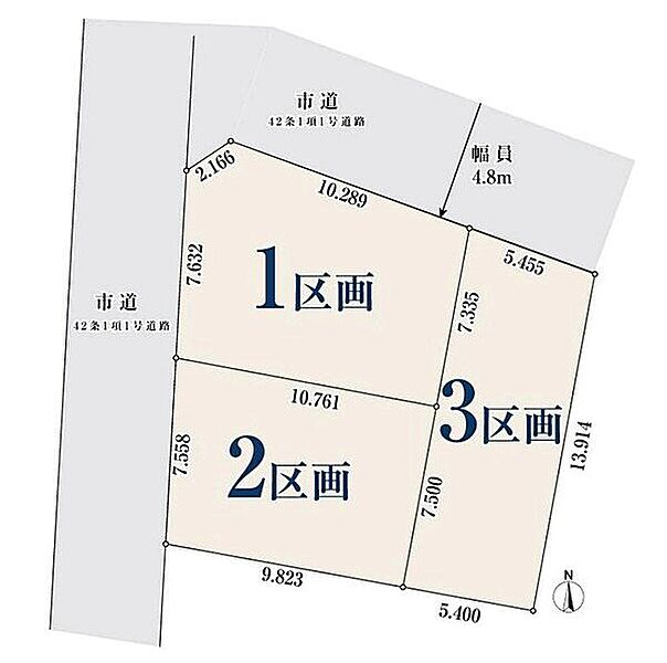 | 駐車場 | 0台(無(1~3区画)) | 道路の幅員 | 4.4m~4.8m |