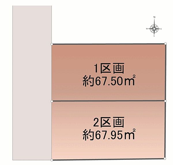 | 備考 | 建築条件無/宅地造成工事規制区域/準防火地域/建築有効面積除外部分1.05m2含(1区画のみ)/建築有効面積除外部分0.93m2含(2区画のみ)/私道部分7.98m2/管理番号:600654 | ||