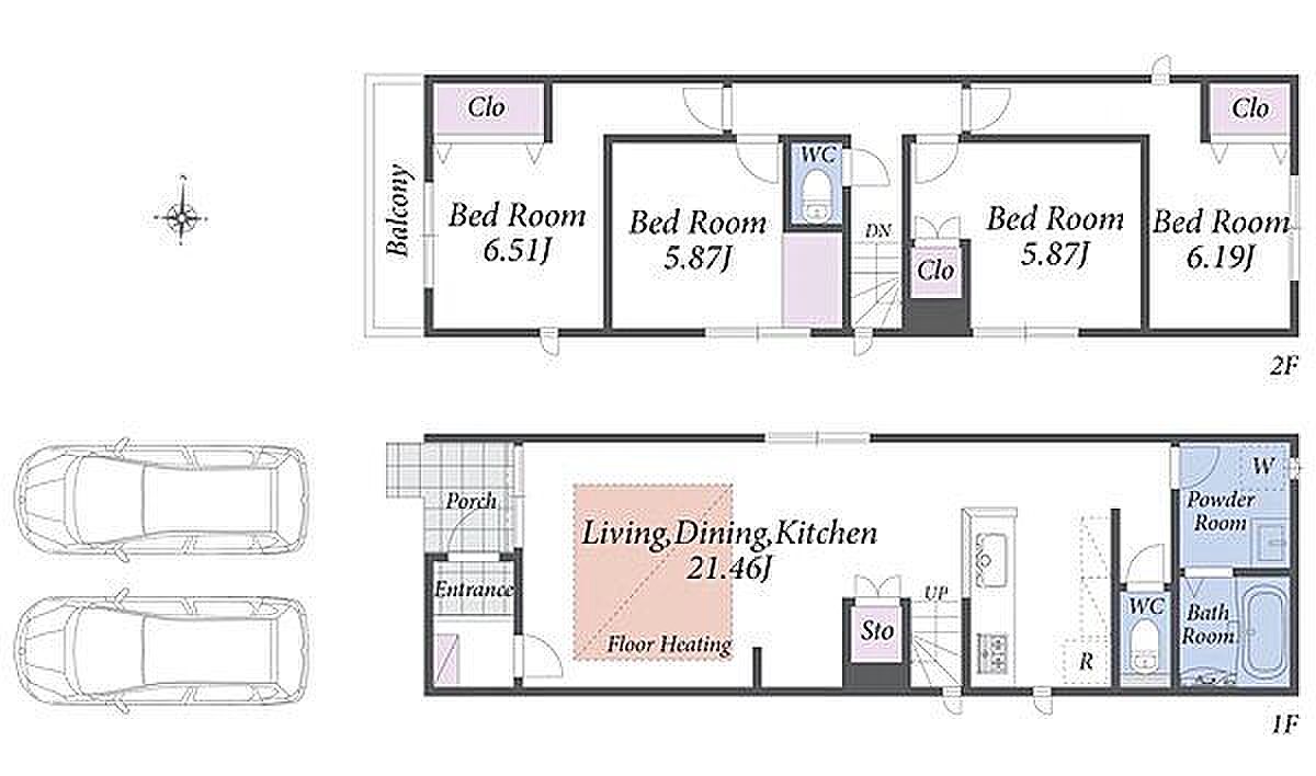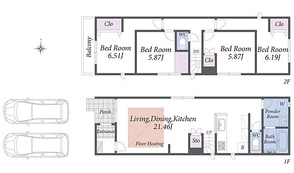 土地面積は広々30坪超!お車2台並列駐車可能な建物参考プランございます。