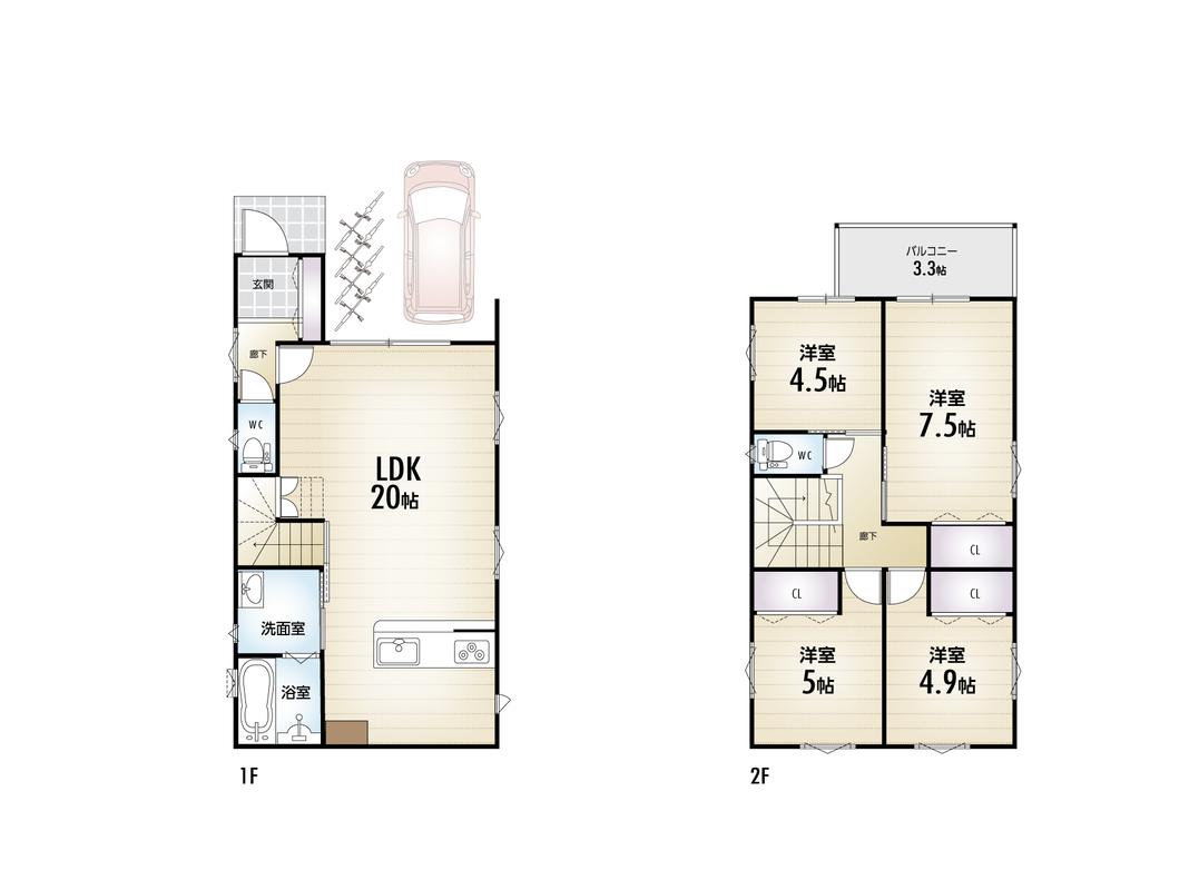 - ※完成予想図やCG合成画像は、門塀・植栽・庭・外観等、実際とは多少異なる場合があります。