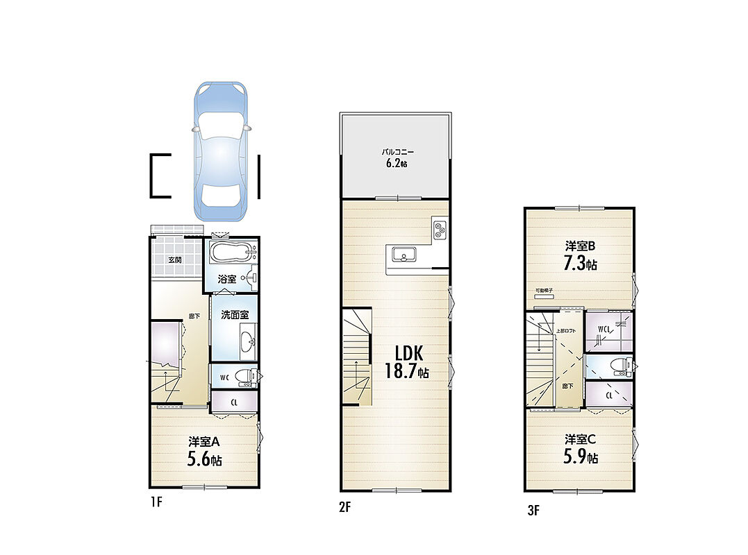 - ※完成予想図やCG合成画像は、門塀・植栽・庭・外観等、実際とは多少異なる場合があります。