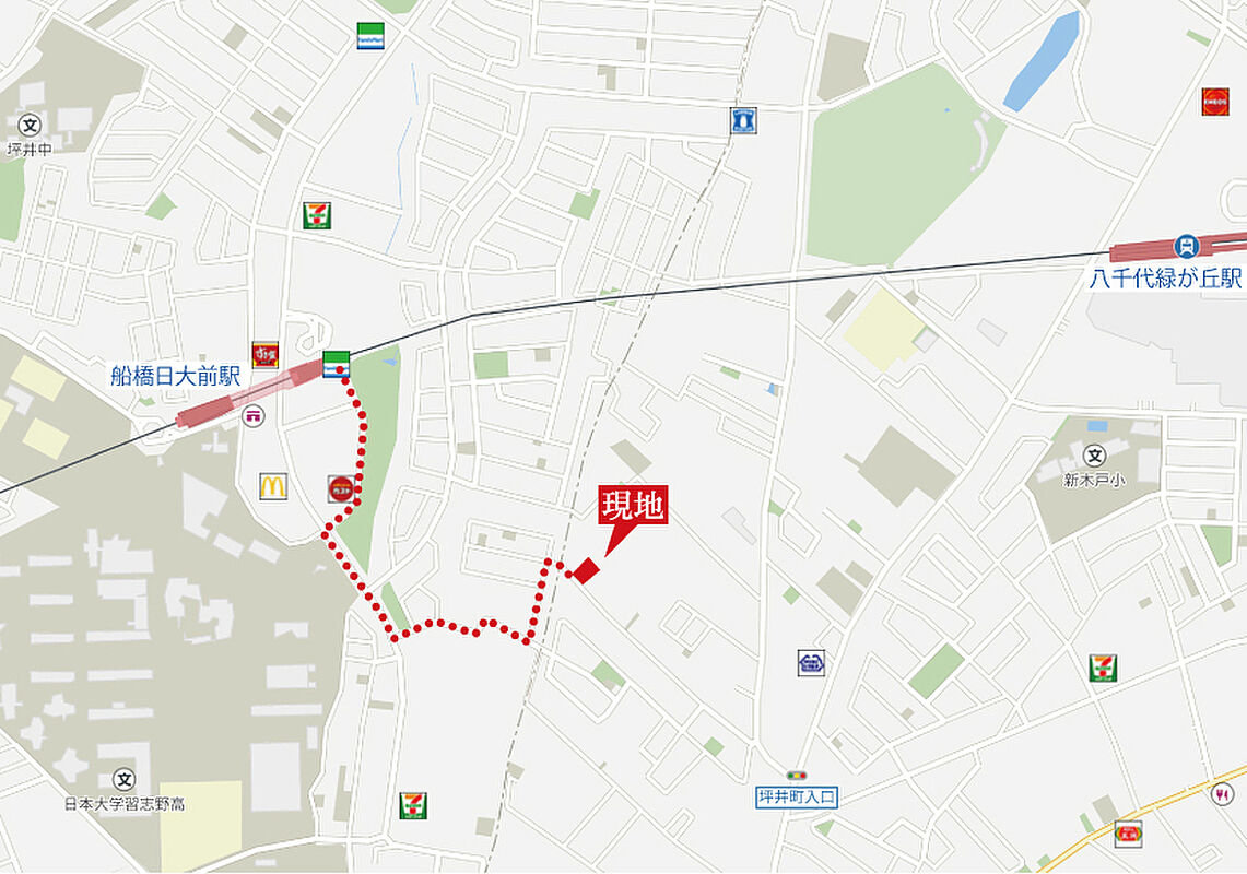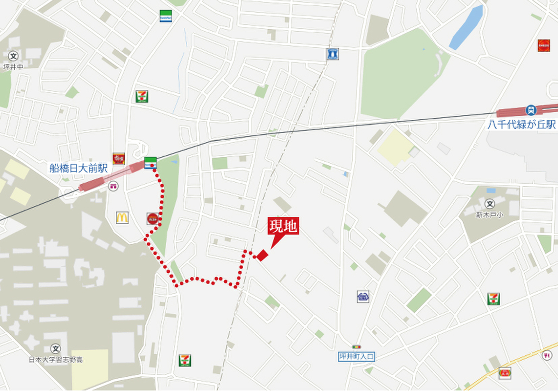 東葉高速鉄道「船橋日大前」駅 徒歩10分 東葉高速鉄道「八千代緑が丘」駅 徒歩16分 |