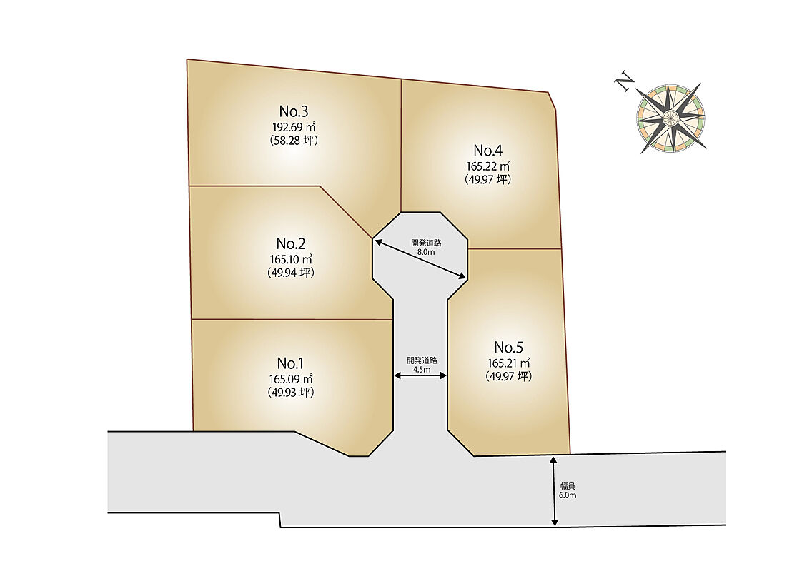 | 駐車場 | 2台 | 道路の幅員 | 道路幅:4.5m~8m、アスファルト舗装(開発道路持分あり) |