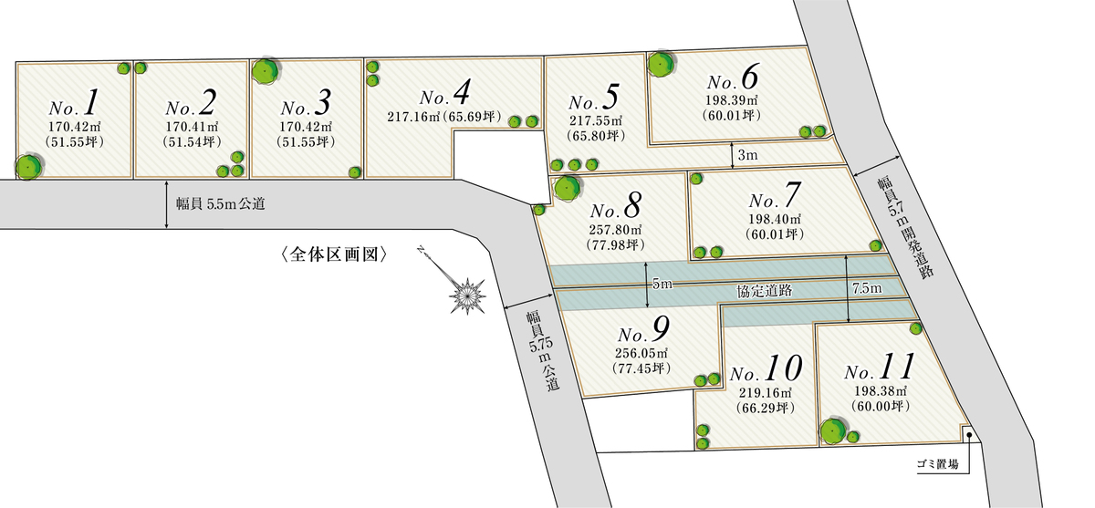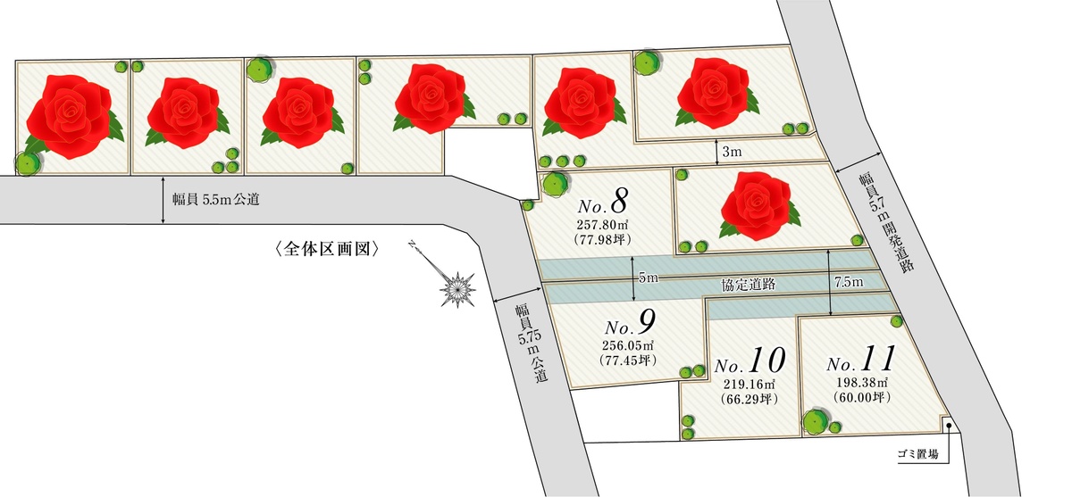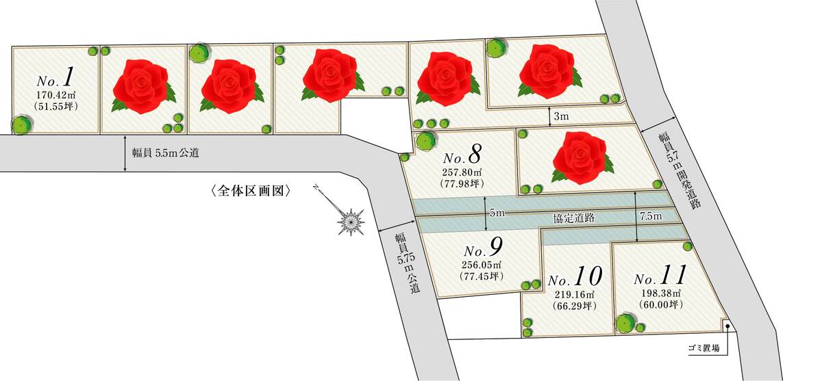 魅力2 敷地面積51坪以上の全11区画!前面道路も広くゆったりした分譲地です♪