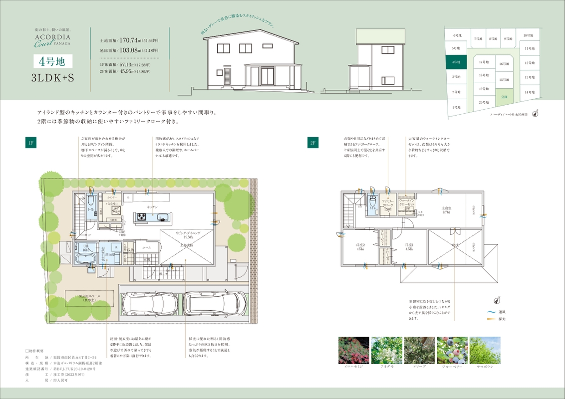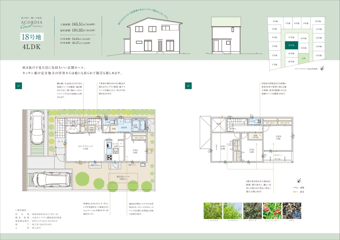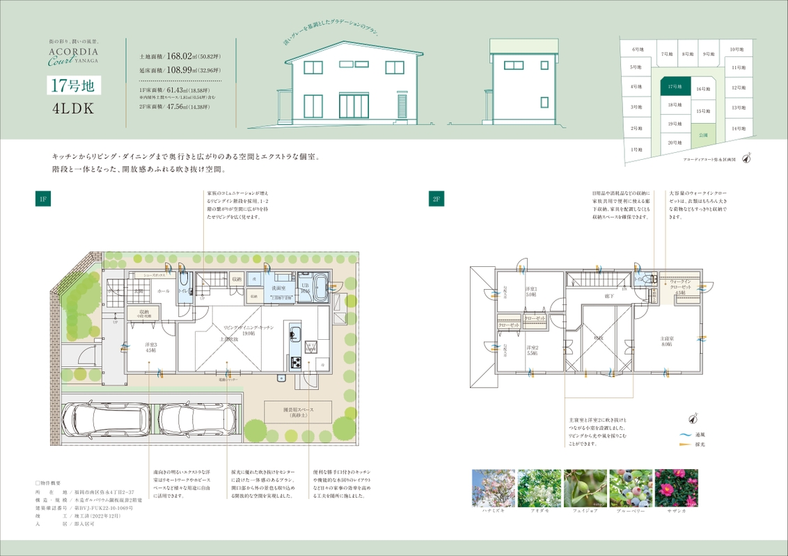 全20区画がひとつの庭のような雰囲気を成し、そこで暮らす人々の繋がりも暮らしも育むまち。家族とともにあること、自然とともにあること。地域や暮らしの調和を育む「庭」、それがアコーディアコート弥永です。