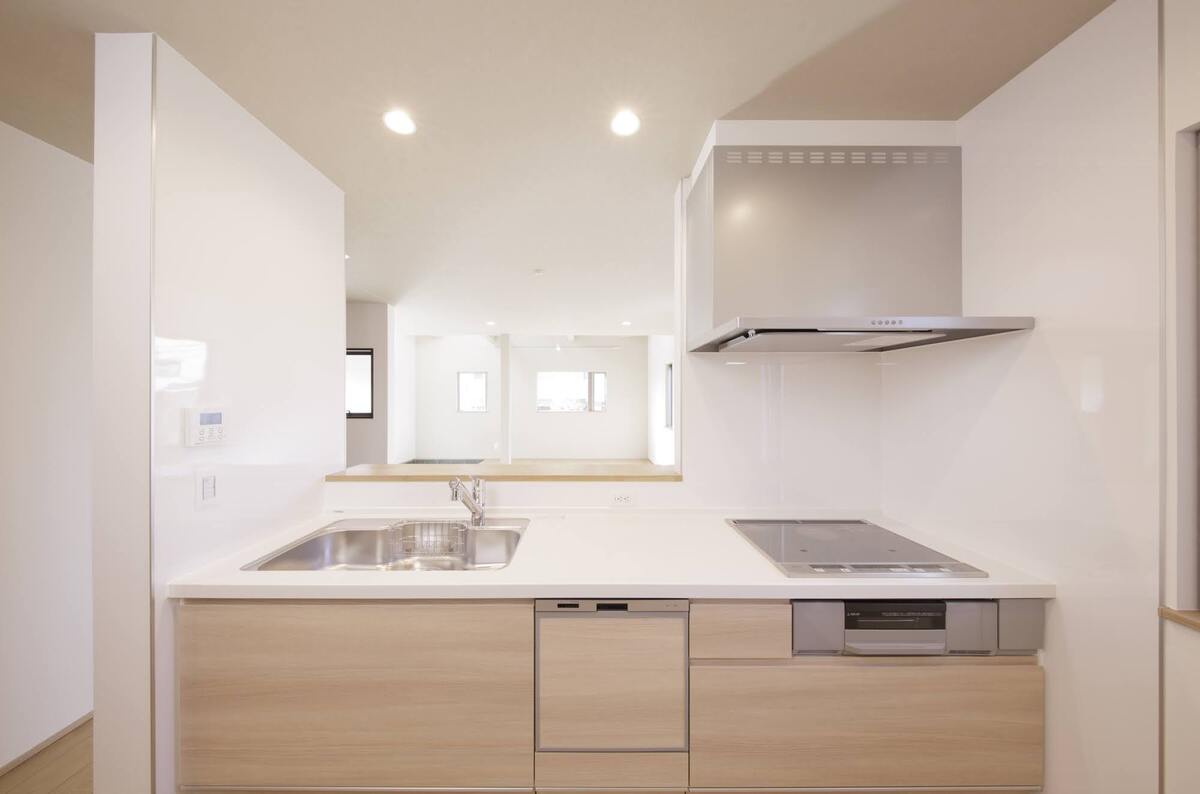 料理をしながらリビング・ダイニングが見渡せる対面式キッチンを採...