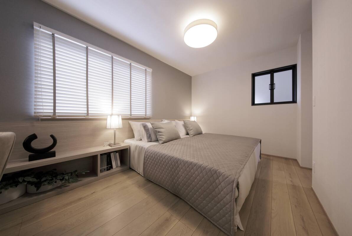 主寝室には吹き抜けとつながる小窓を設置しました。リビングから光...